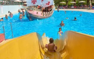 Caravelle is the most important water park in Liguria, with an average of 120,000 visitors a year. Inaugurated in 1989 and dedicated to Christopher Columbus, as the name suggests, it is located in a green area at the foot of the Rio Torsero regional nature reserve, just 5 km from the town of Albenga, and overlooking the beautiful Ligurian Sea. It boasts a consolidated and undisputed experience in the summer accommodation and entertainment sector which makes it one of the most popular water parks in Northern Italy.