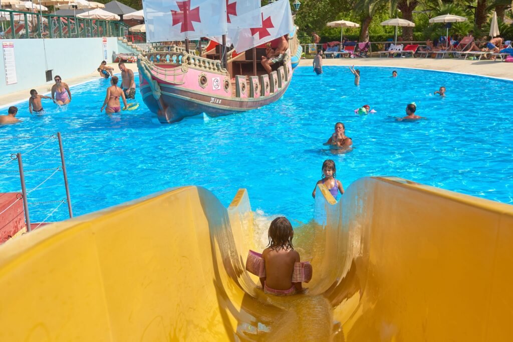 Very easy to reach a short distance from the Via Aurelia, it covers an area of 80,000 square meters and offers attractions – slides, toboggans, kamikazes, a wave pool, the special relaxation area “The source of the heart” – for young and old mainly families with a carefree and fun offer thanks to a tried and tested formula that combines entertainment, involvement and games.